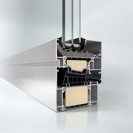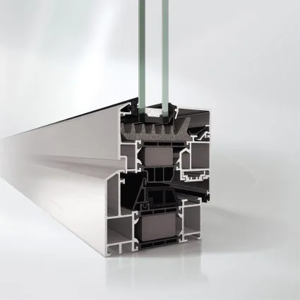 Innovative Schaumverbund isolier stege, groß-volumige Mittel dich tungen und umlaufende Verglasungs abdichtungen sorgen für einen Profilaufbau, der zu drastischen Energieeinsparungen führt.
