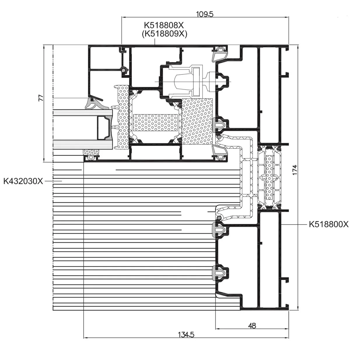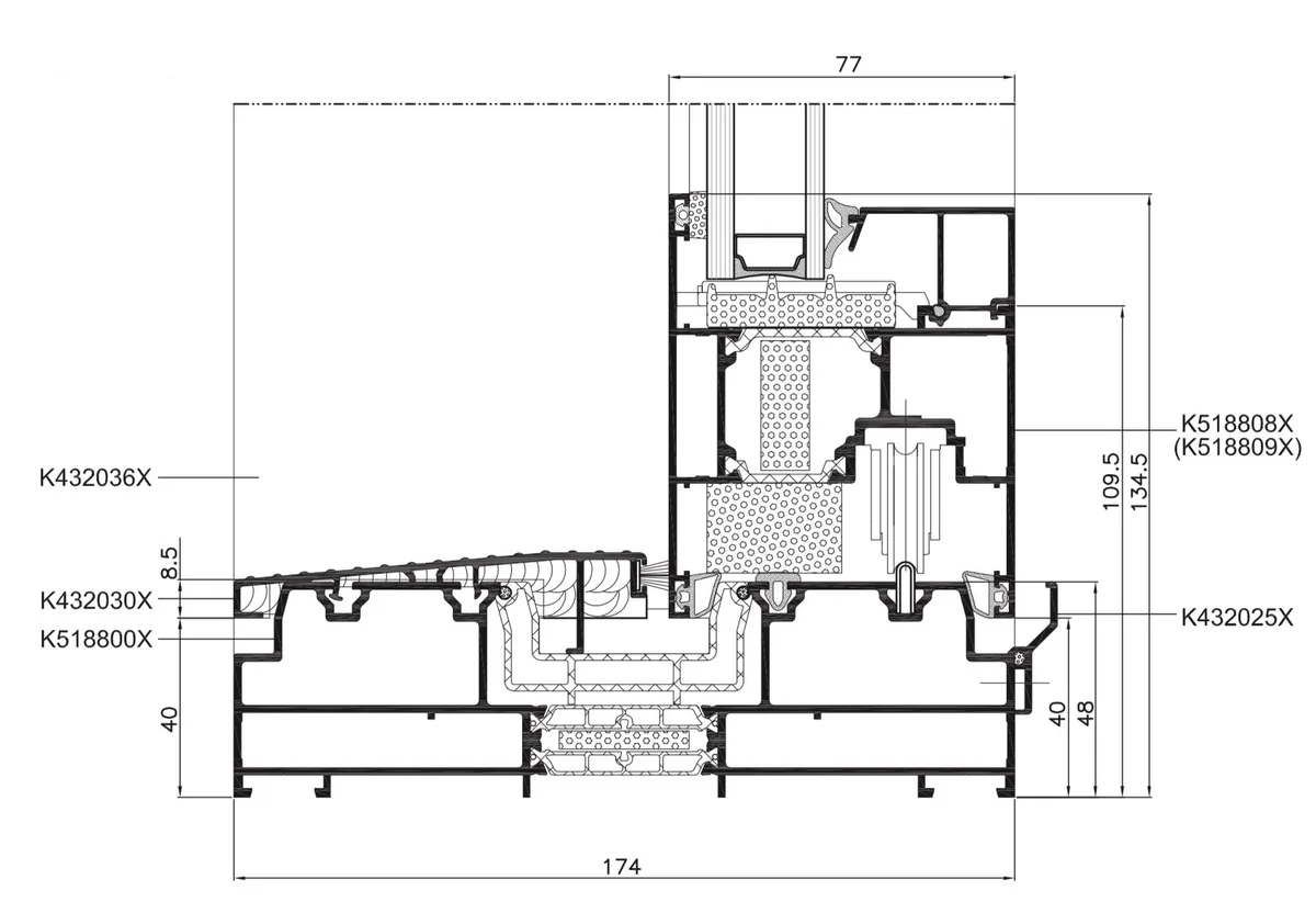 - Flügeltiefe 77 mm, Verglasungsstärke 13,5 – 58,5 mm