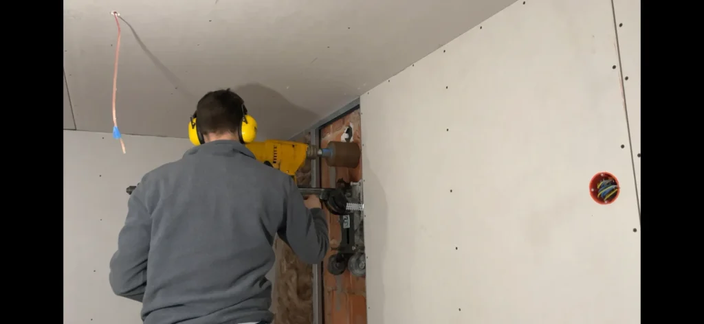 Die Installation ist kein Wochenendprojekt für Heimwerker. Für jedes Gerät muss ein Loch von etwa 170 mm Durchmesser durch die Außenwand gebohrt werden. In meinem Fall war das eine besondere Herausforderung.