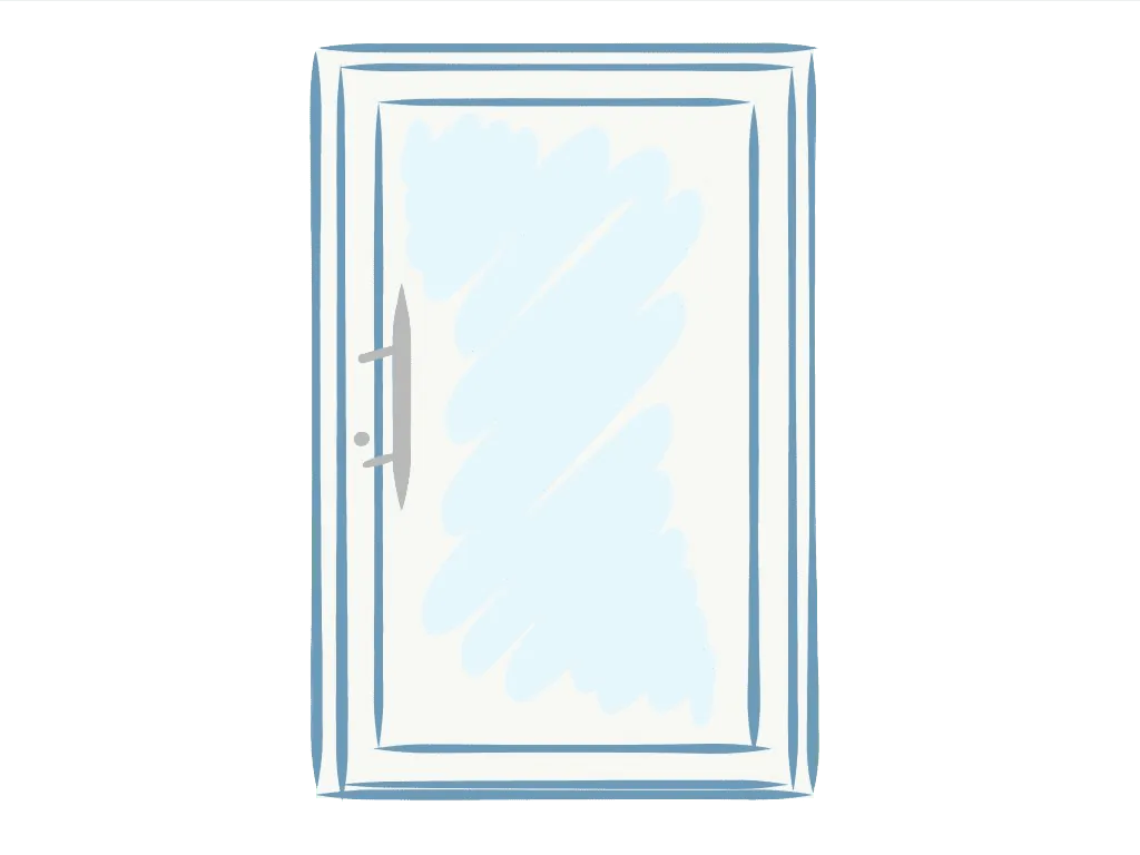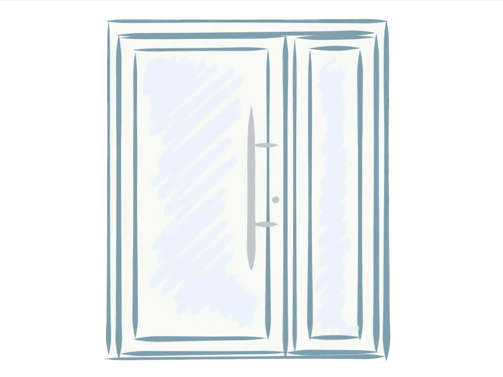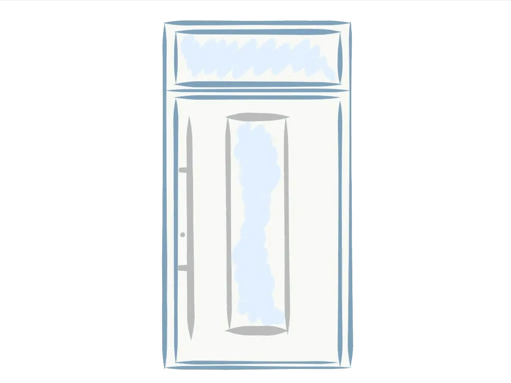Türen mit einseitigem Aufsatzpaneel sind eine wirtschaftlichere Option als die oben besprochenen Varianten. Ihre glatte und mit dem Türrahmen bündige Flügelfläche vermittelt von außen die ästhetischen Qualitäten von Türen mit beidseitigem Paneel. Jedoch ist von innen die Glasleiste sichtbar. Wir beschreiben diesen Typ von Türen ausschließlich zu Bildungszwecken und führen solche Aufträge nicht aus.