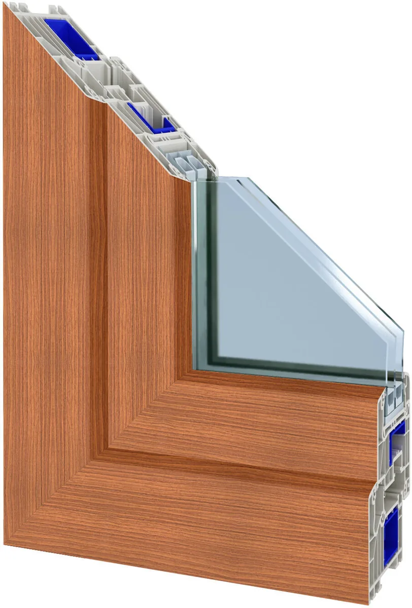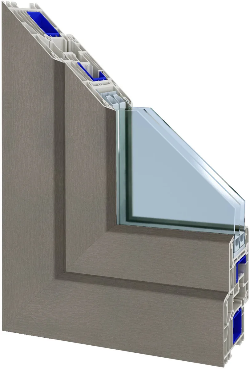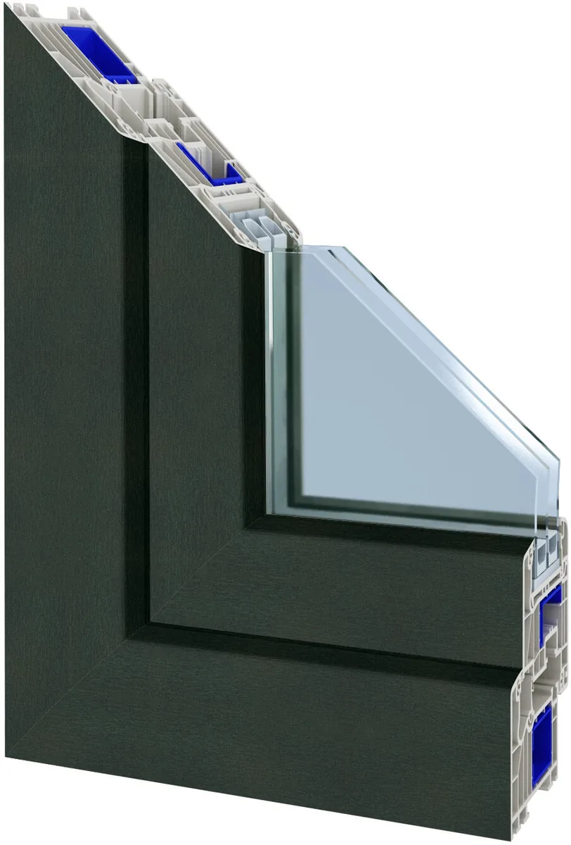 Fenster aus Schüco-Profilen können unterschiedliche Farben haben. Dies erreichen wir mit systemgeklebten Fensterprofilen. Die Farben von Folien kann zum Beispiel hochmodern sein: in gebürsteten Aluminiumfarben, durch Anthrazit oder von Grautöne bis hin zu klassischen zeitlosen Farben, die Holz imitieren. Die Folierung von Profilen ist extrem langlebig. Sie können Ihre ästhetischen Fantasien ohne Angst erfüllen.