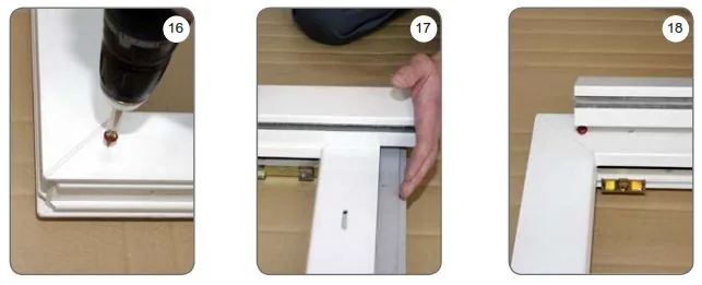 Die Länge und der Typ der selbstbohrenden Schrauben mit flachem Kopf sollen richtig, je nach der Fensterrahmenstärke, angepasst werden, um eine maximal sichere Verbindung beider Profile zu erreichen.