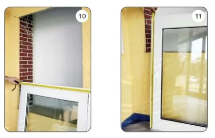 h) Legen Sie das Verbindungsprofil an den Fensterrahmen an, indem Sie den gleichen Abstand beiderseits behalten (ca. 15 mm).