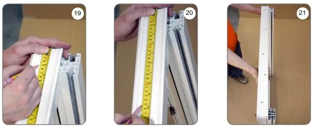 m) Stellen Sie das Fenster vertikal auf, sodass das Verbindungsprofil sich im oberen Teil des Fensters befindet.
