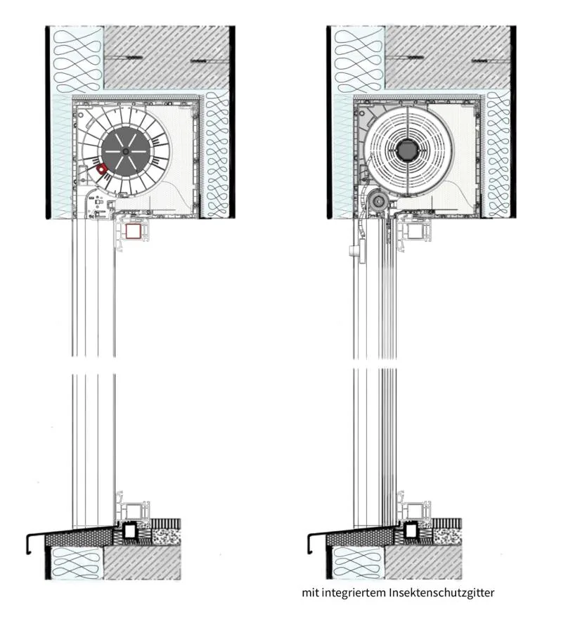 Wirtschaftlichere Aufsatz-Alternative mit Service von innen: Revision innen. Für vollständige Trennung in der Fassade: Vorsatz (Putzträger).
