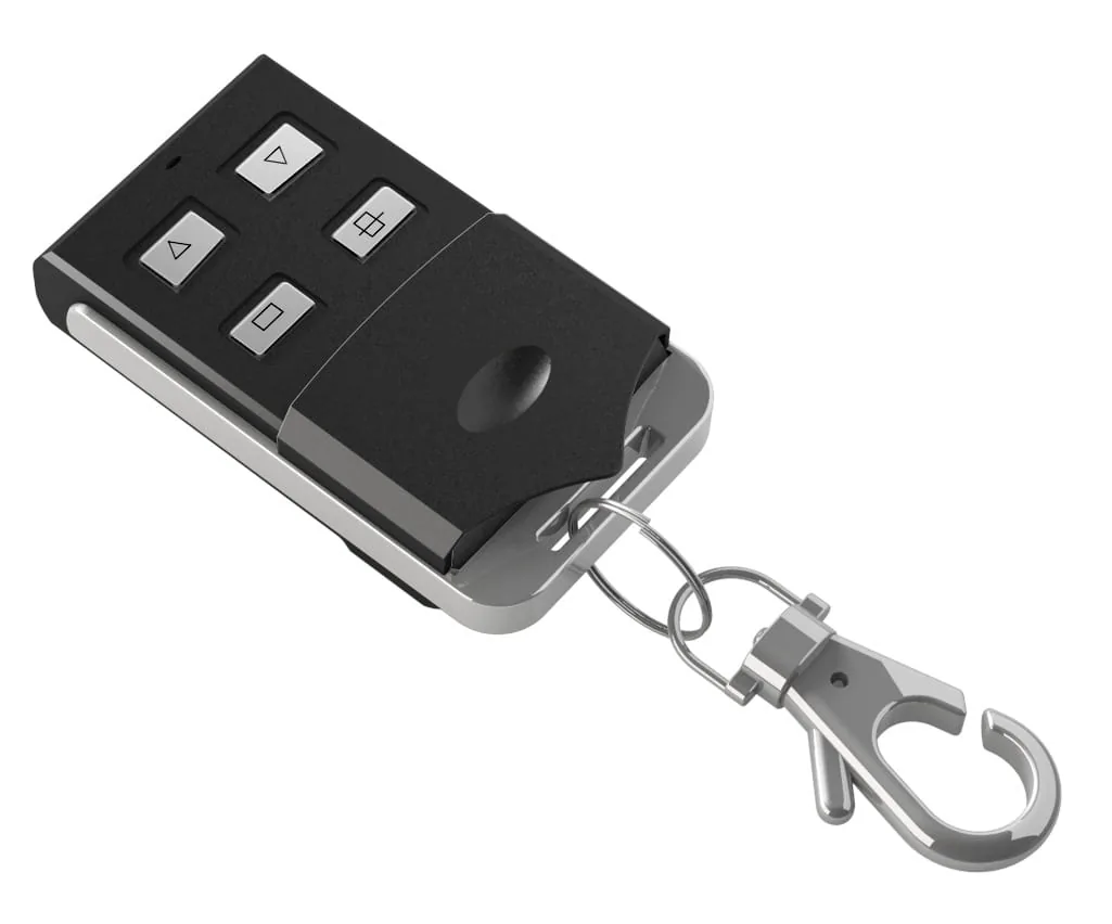 Die Aluprof DC115A-Fernbedienung sieht aus wie ein Schlüssel-Anhänger, eine funktionale und äußerst praktische Lösung – Sie können sie überall mitnehmen. Mit einem Kanal können Sie einen Antrieb oder eine Gruppe von bis zu 20 Antrieben steuern und sowohl ein Rolltor als auch ein Rollläden steuern. Die Schiebeklappe verhindert ein versehentliches Drücken der Tasten.