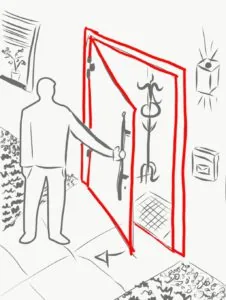 Zusammenfassend: Wenn wir die Tür „auf uns selbst“ öffnen, stehed im Flur unseres Hauses oder unserer Wohnung und die Scharniere rechts zu sehen sind, sagen wir, dass es sich um RECHTE TÜREN handelt, die sich INNEN ÖFFNEN.
