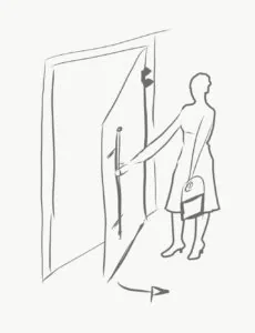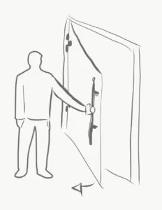 Um richtig zu bestimmen, wie sich Ihre Tür öffnet (oder wie sie sich öffnen sollte), denken Sie daran, dass sich der Türflügel in unsere Richtung öffnen muss, wenn Sie vor der Tür stehen und am Türgriff oder Stoßgriff ziehen möchten, was umgangssprachlich „zu uns“ bedeutet.