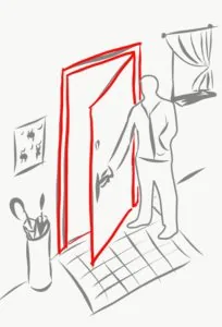 Wenn wir jedoch vor dem Eingang des Hauses oder der Wohnung draußen stehen, d. h. vor dem Hof oder dem Treppenhaus, und die Scharniere sich auf der linken Seite des Flügels befinden, sprechen wir von „LINKEN“ TÜREN, DIE AUSSEN ÖFFNEND SIND.